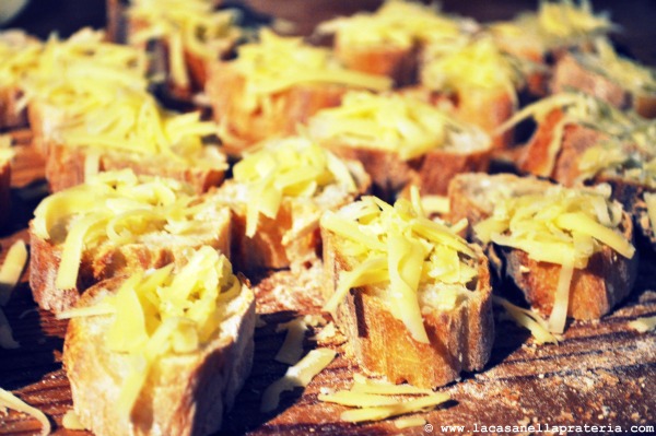 *Noi facciamo molti più crostini, che facciamo cuocere in forno separatamente, con il formaggio grattugiato, per poi metterli nella zuppa all’ultimo momento.